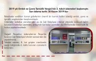 2019 yılı Emlak ve Çevre Temizlik Vergisinin 2. taksit ödemeleri 1 Kasım 2019’da başlayacaktır. Son ödeme tarihi 30 Kasım 2019’dur.