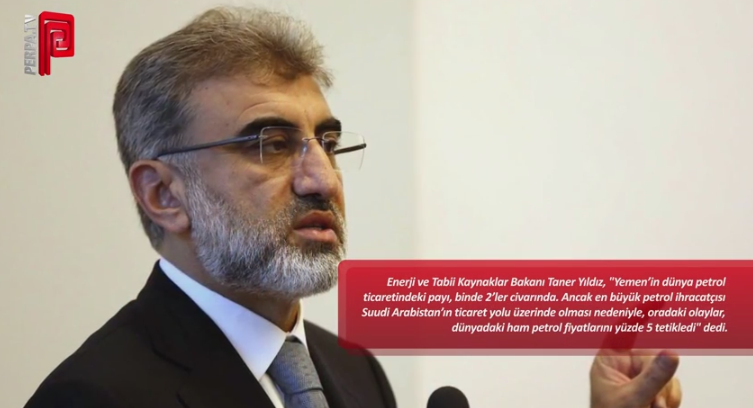 Enerji ve Tabii Kaynaklar Bakanı Taner Yıldız, “Yemen’in dünya petrol ticaretindeki payı, binde 2’ler civarında. Ancak en büyük petrol ihracatçısı Suudi Arabistan’ın ticaret yolu üzerinde olması nedeniyle, oradaki olaylar, dünyadaki ham petrol fiyatlarını yüzde 5 tetikledi” dedi.