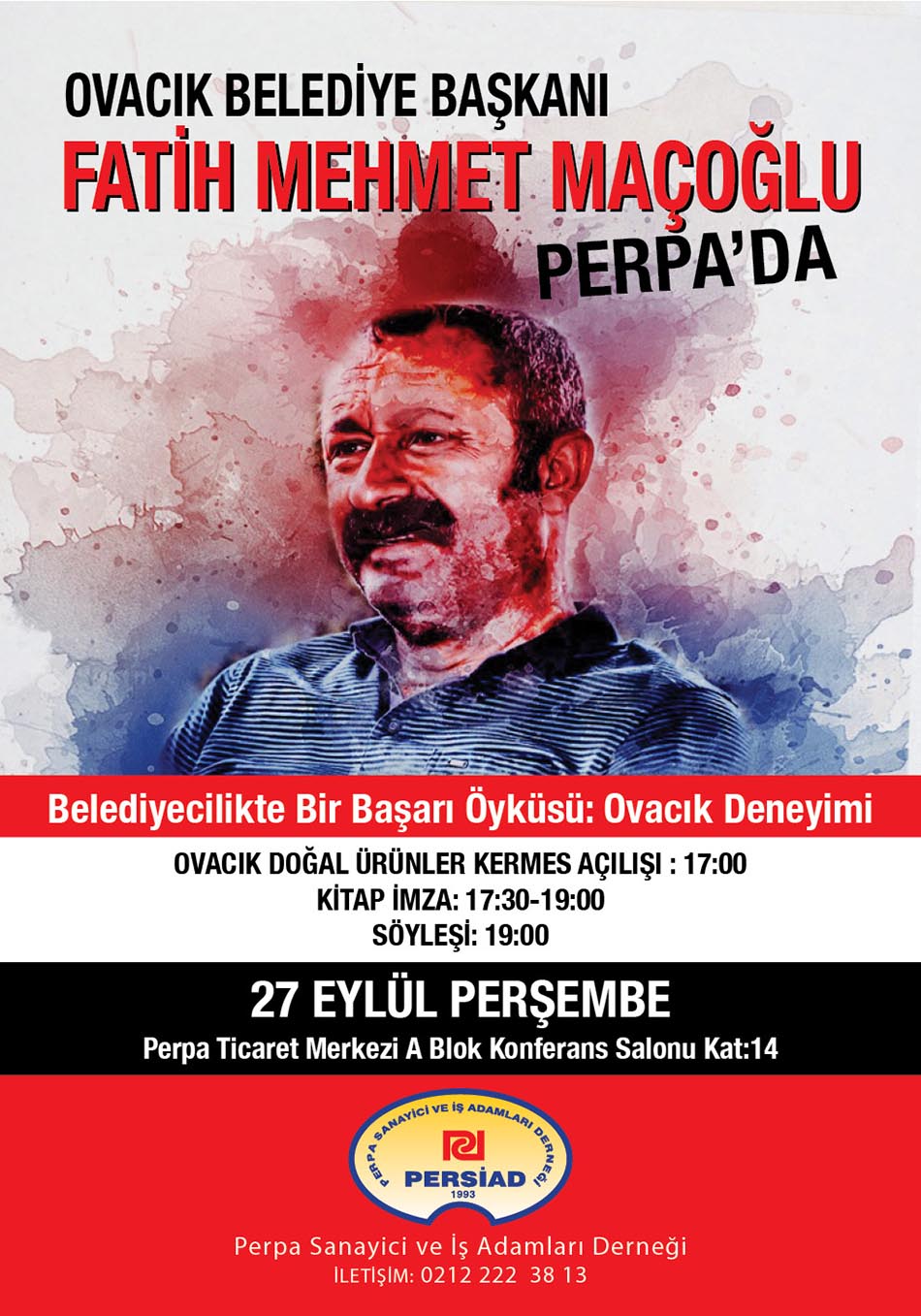 Ovacık Belediye Başkanı Maçoğlu PERPA’ya Geliyor. Ovacık Belediye Başkanı Fatih Mehmet Maçoğlu, Perpa Ticaret Merkezi’ne geliyor.