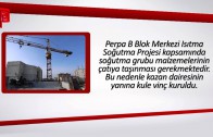 Perpa B Blok Merkezi Isıtma Soğutma Projesi kapsamında soğutma grubu malzemelerinin çatıya taşınması gerekmektedir. Bu nedenle kazan dairesinin yanına kule vinç kuruldu. Mobil vinç ise yolu kapatması nedeniyle tercih edilmedi. Kule vinç, 1 ay sonra çalışmaların bitimiyle sökülecektir. Perpa B Blok Yönetimi verdiği geçici rahatsızlık nedeniyle özür diler.