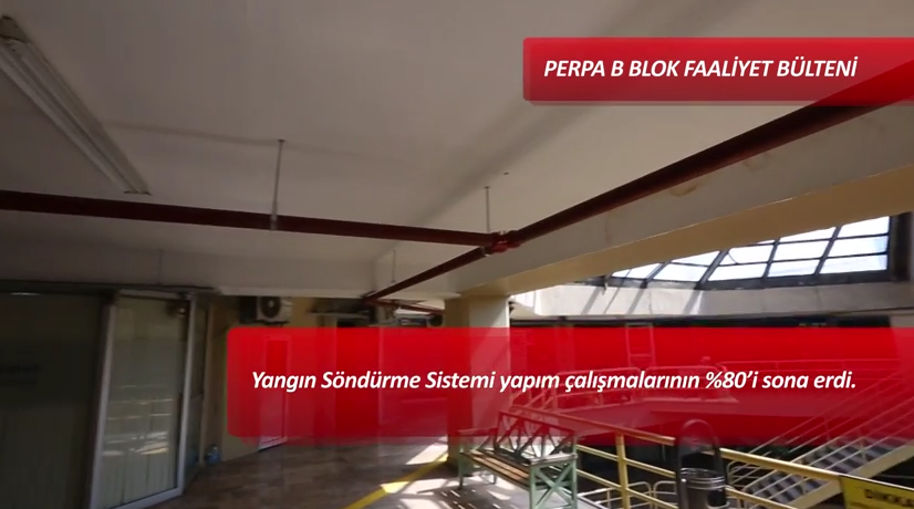 İş Sağlığı ve Güvenliği Kanunu ve Yeni İtfaiye Yönetmeliği kapsamında Perpa B Blok Yönetimi, sorumluluk alanı içerisinde Yangın Söndürme (Sprinkler) Sistemi yapımını sürdürüyor.
