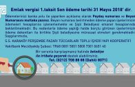 Emlak Vergisi 1.Taksit Son Ödeme Rarihi 31 Mayıs 2018’ dir.