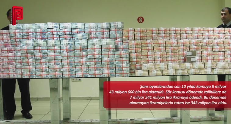 Şans oyunlarından son 10 yılda kamuya 8 milyar 43 milyon 600 bin lira aktarıldı. Söz konusu dönemde talihlilere de 7 milyar 541 milyon lira ikramiye ödendi. Bu dönemde alınmayan ikramiyelerin tutarı ise 342 milyon lira oldu.